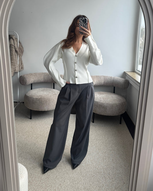 IšparduotaBaltas moherinis megztukas su užtrauktuku