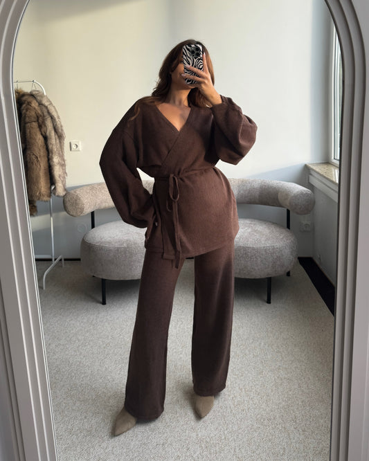 Rudas dviejų dalių kostiumėlis su užtrauktuku