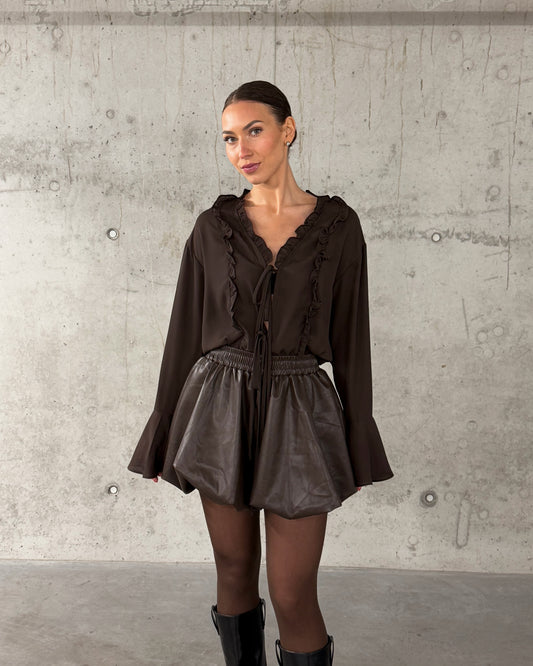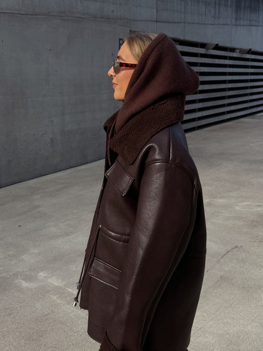 Rudas dirbtinio lamos kailio šalikas PUFFY