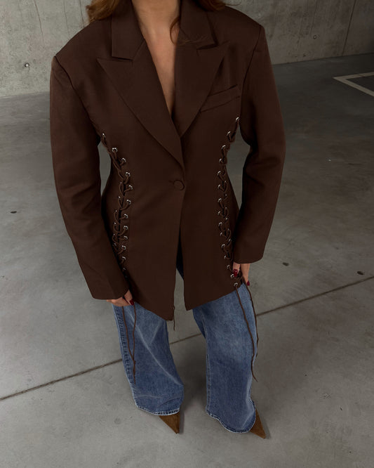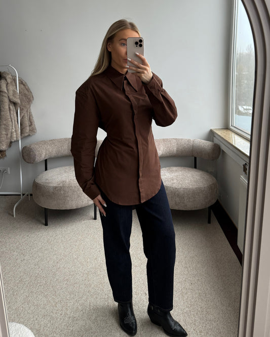 Rudi įliemenuoti marškiniai su petukais SCULPT