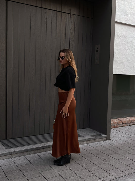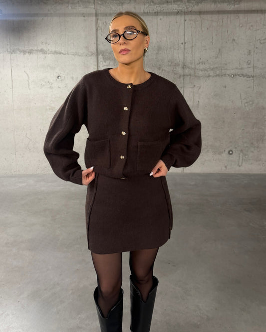 IšparduotaRudas kostiumėlis su sijonu MILA