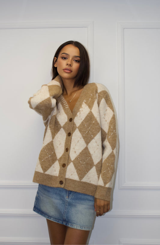IšparduotaSmėlio spalvos kardiganas su alpakos vilna