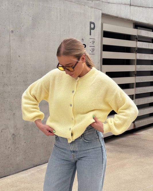 IšparduotaGelsvas megztukas SOFÉ su alpakos vilna