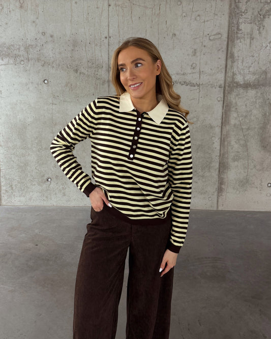 IšparduotaGelsvas dryžuotas megztukas NOOR