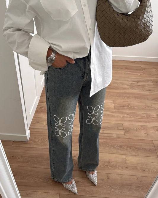 IšparduotaŠviesiai mėlyni džinsai (aukštesnėms)