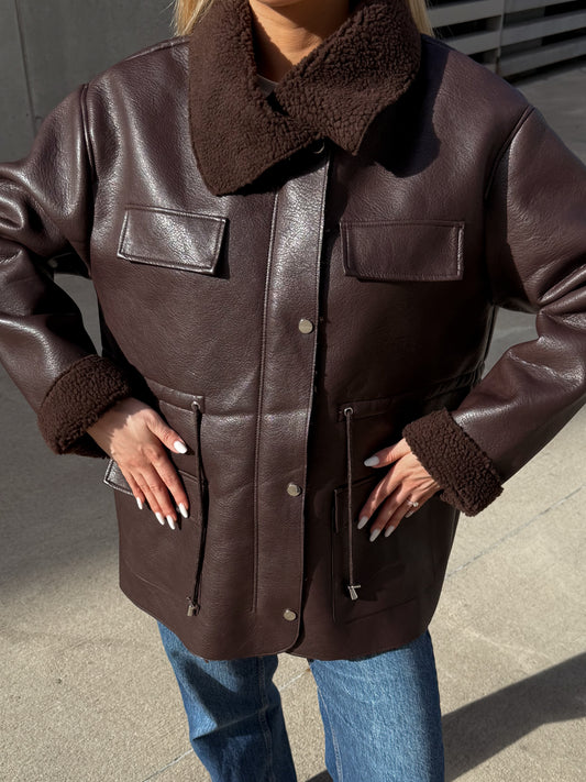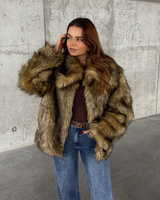 IšparduotaEko odos striukė su kailiuku BRUNO