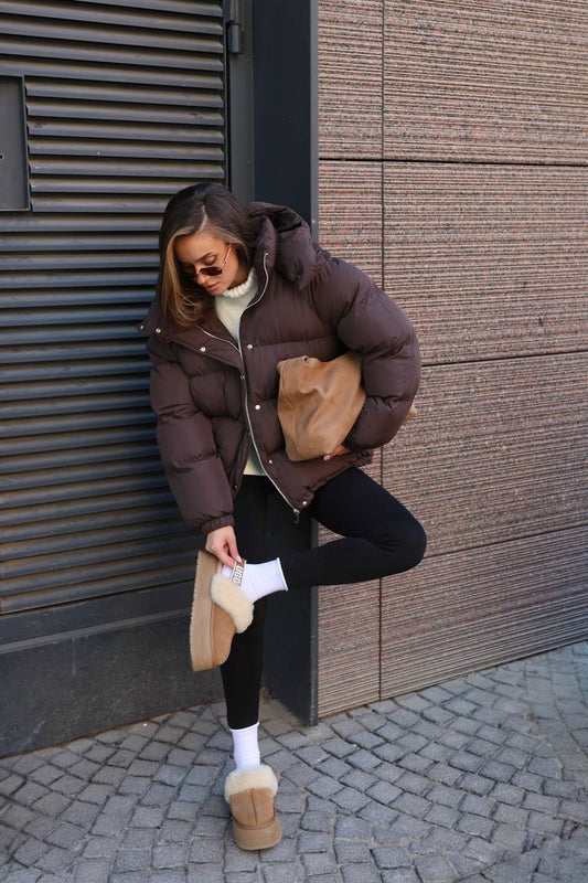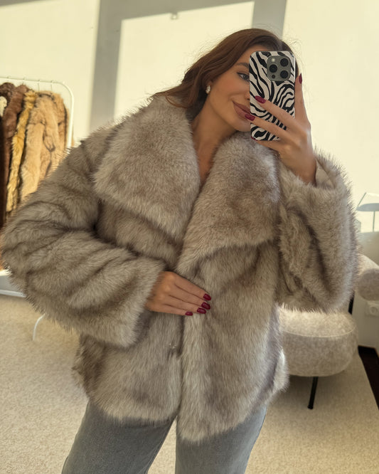 Pašiltintas paltas su dirbtiniu kailiu REY