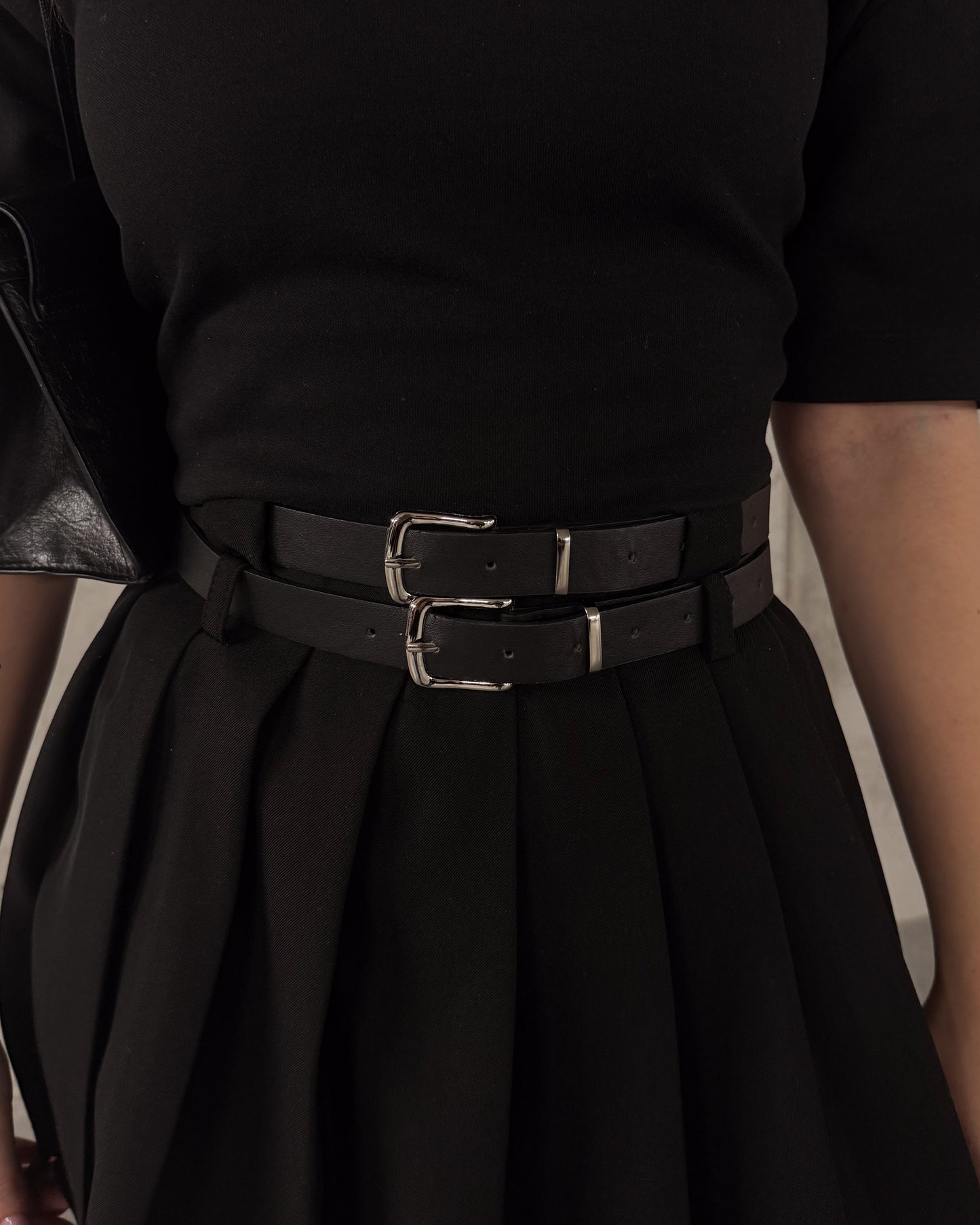 Šis elegantiškas juodos spalvos sijonas turi šortukus, kurie užtikrina komfortą bei judėjimo laisvę. Komplekte yra du dirželiai, tačiau puikiai tinka nešioti ir su vienu. Medžiaga itin maloni ir kokybiška.