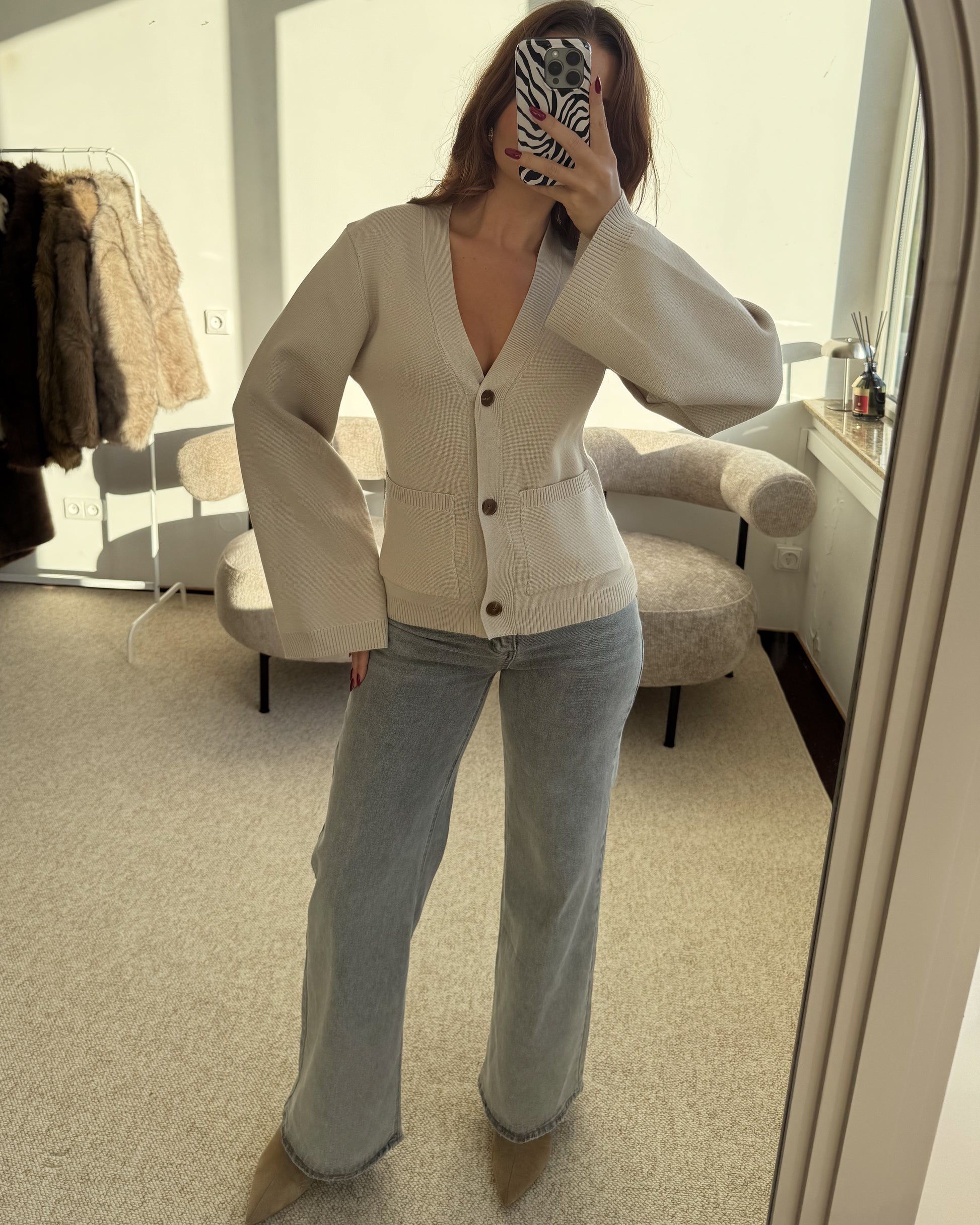 Modelis turi subtilų susiaurėjimą ties liemeniu, todėl gražiai pabrėžia figūrą ir suteikia išraiškingą siluetą. Pagamintas iš kokybiškos, standžios medžiagos, kuri maloniai priglunda prie kūno ir išlaiko formą.