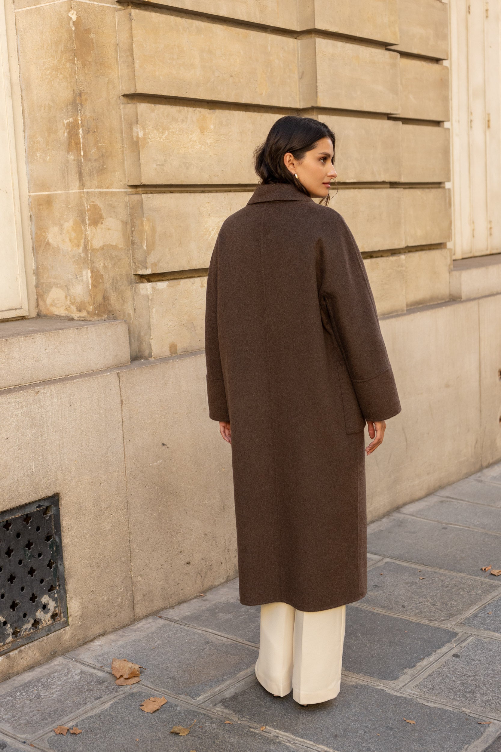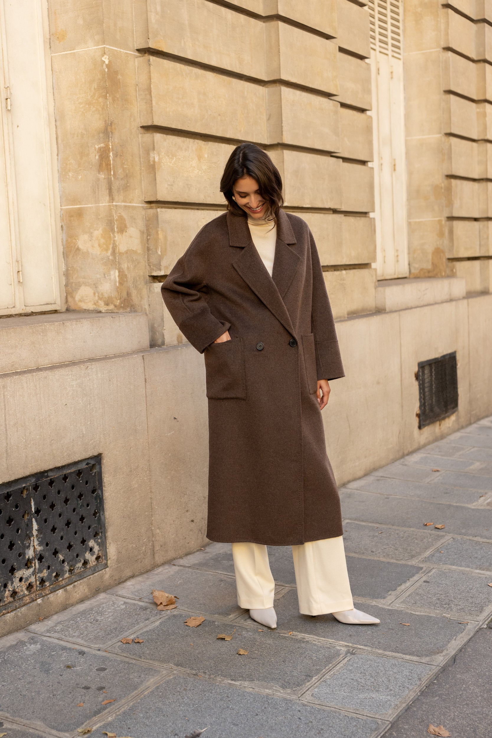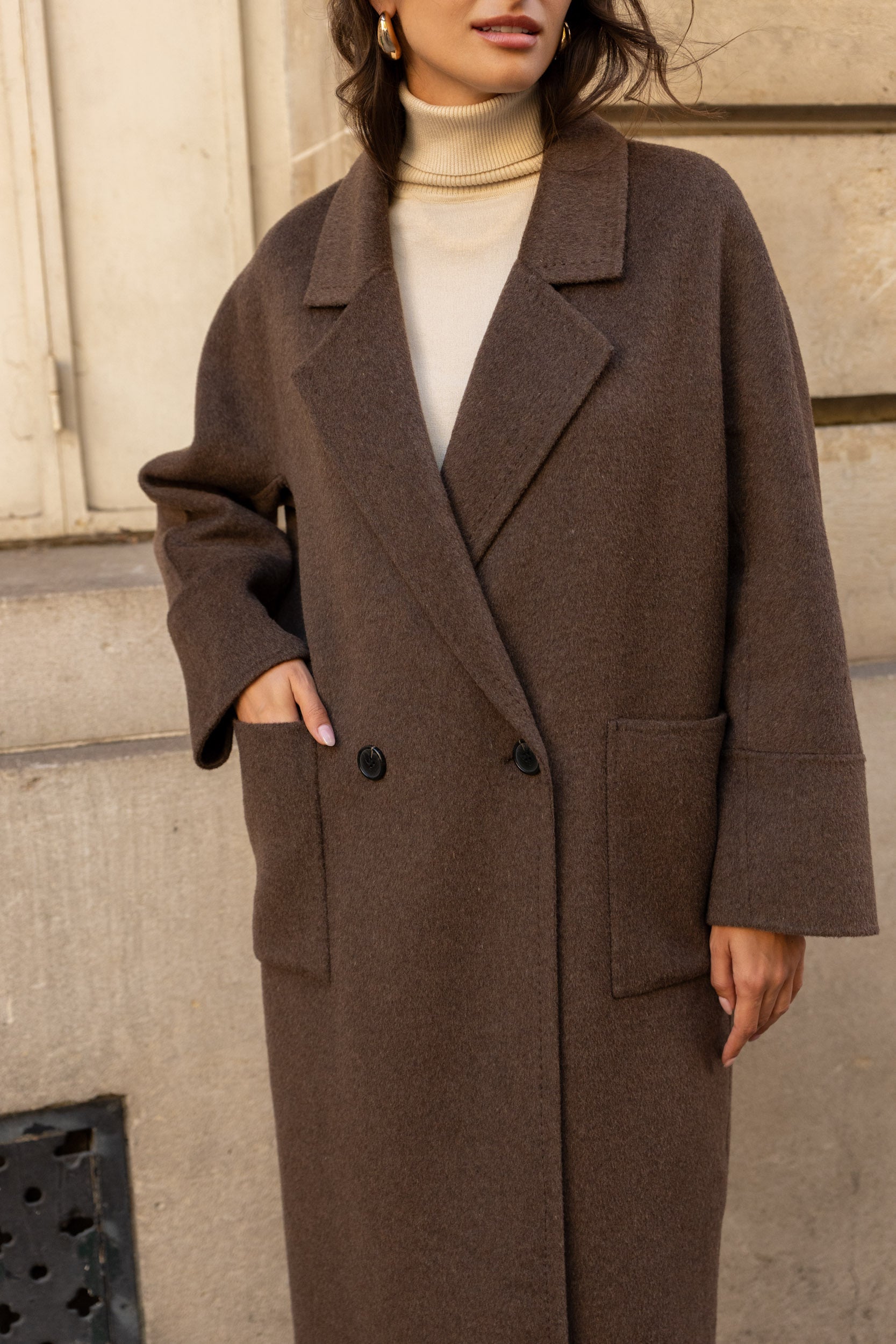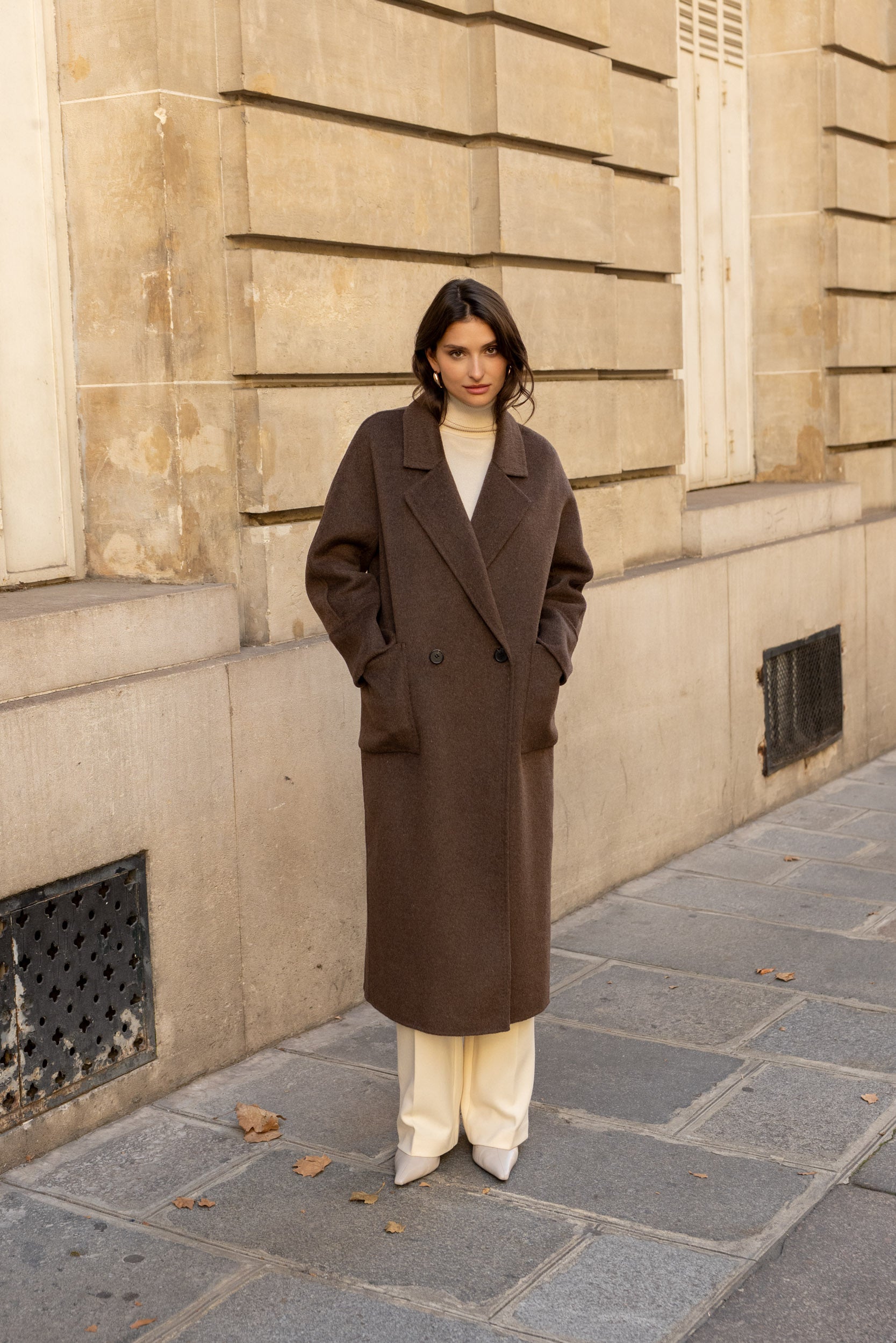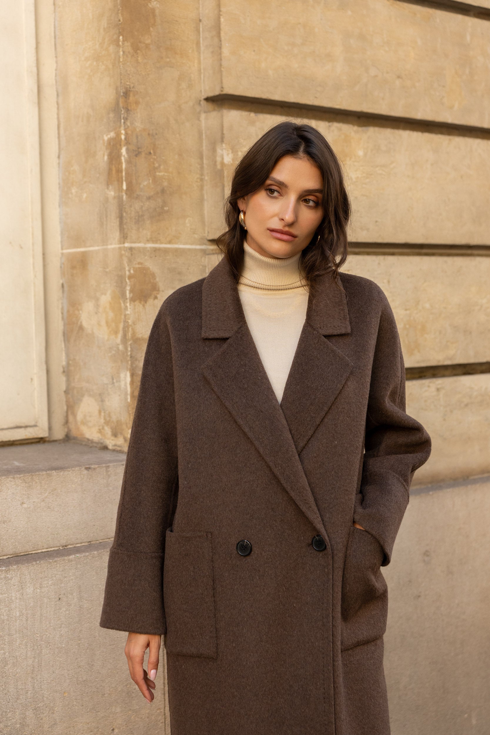 Klasikinio silueto ilgas vilnonis paltas - šiltas, elegantiškas ir itin universalus pasirinkimas rudens bei žiemos sezonui. Tiesus kirpimas su šiek tiek platesnėmis pečių linijomis suteikia modernumo, o dvieiliai sagų užsegimai ir gilios kišenės užtikrina patogumą.