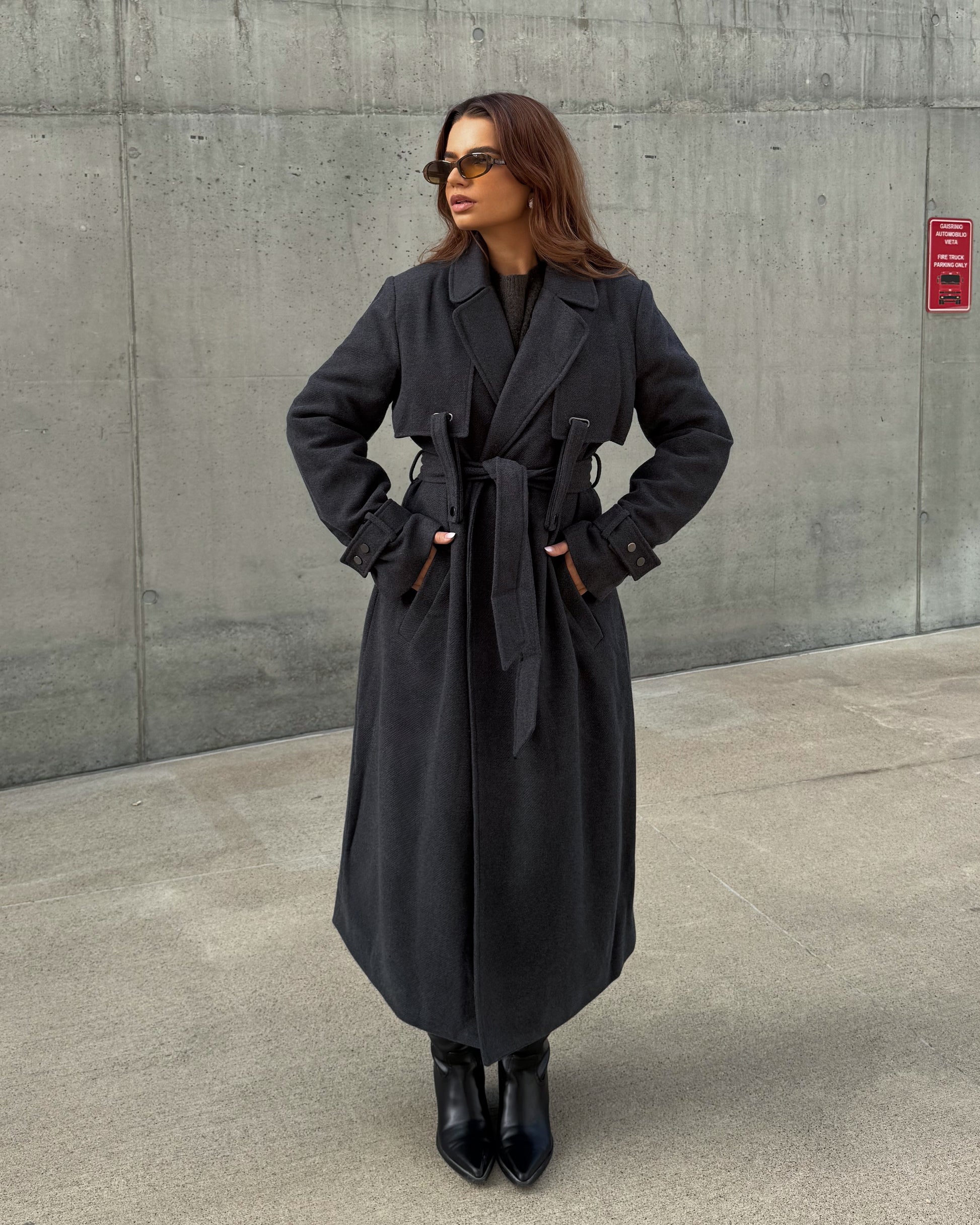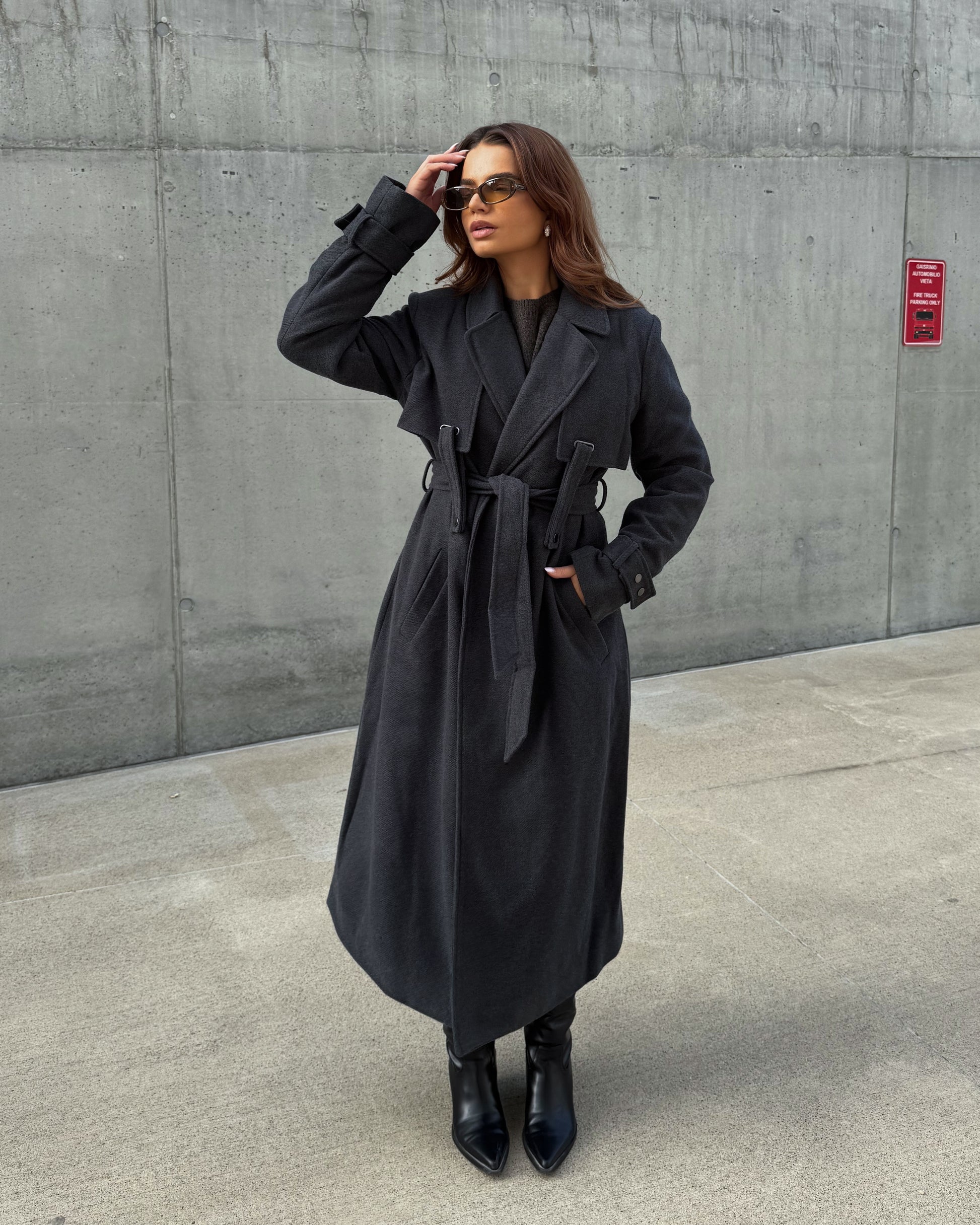 Modernaus stiliaus paltas su išskirtinėmis detalėmis. Paltas turi pamušalą, šiltas - puikiai tiks rudens/žiemos sezonui. Norint šiek tiek oversized stiliaus rekomenduojame rinktis 1-2 dydžiais didesnį. Modelis dėvi L dydį.